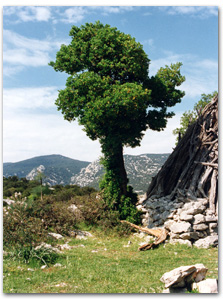 Sotto le pareti rocciose, aspre e brulle, si stende una cupa e intensa fascia di boschi di lecci che contrasta con le verdi vallate di "Guthiddai" e "Dule" tappezzate di vigneti cui fanno da contorno le ampie distese collinari di mandorli e ulivi.